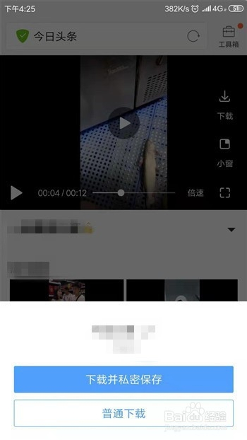 点击之后可以分为私密下载和通俗下载,选择中即可下载今日头条视频到手机。