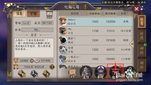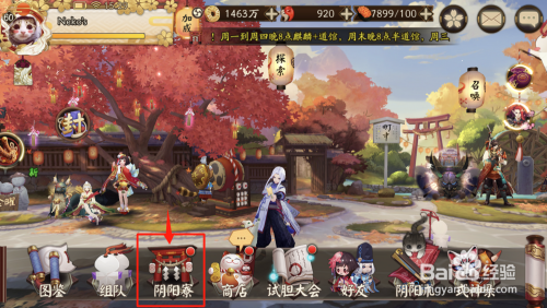 进入游戏后在天井页面,选择下方的‘阴阳寮’,没有寮的需要先插手一个寮才能进行结界寄养哦;