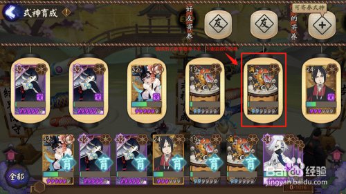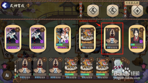 我们先将本身已经满级的式神换下来,换当作一个需要进级可是还未满级的式神上去;