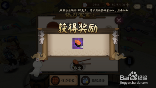 再接着我们收取小酒瓶图标,也就是溢出来的经验,所收取的经验就会全数加在今朝你置放在本身结界里的式神身上了。