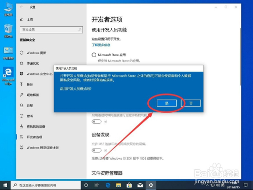 弹出提醒是否要启用开辟人员模式,选择”是“