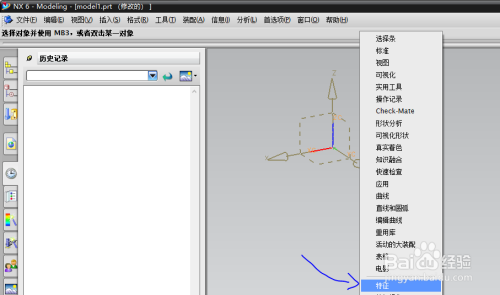此时会弹出一个右键菜单,在里面找到特征号令。