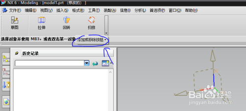 此时即可发此刻本家儿界面中弹出了一个特征东西条,选择东西条选项按钮。