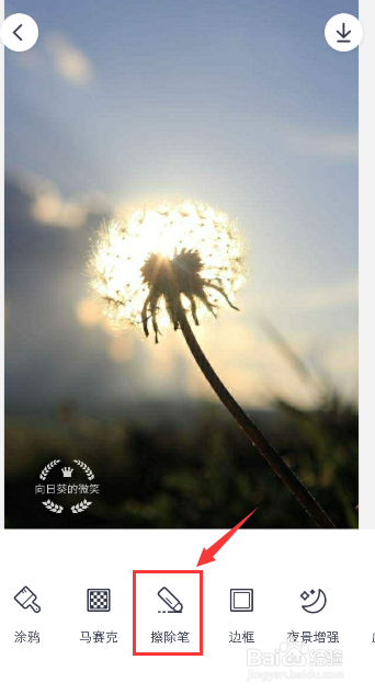上传当作功后,在页面下方的选择中,你往右翻动,找到“擦除笔”,点击它。