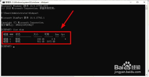 继续输入“list disk”后回车