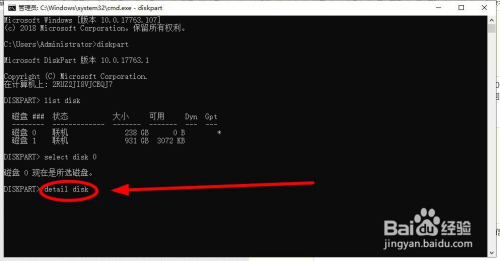 继续输入“detail disk”,然后回车