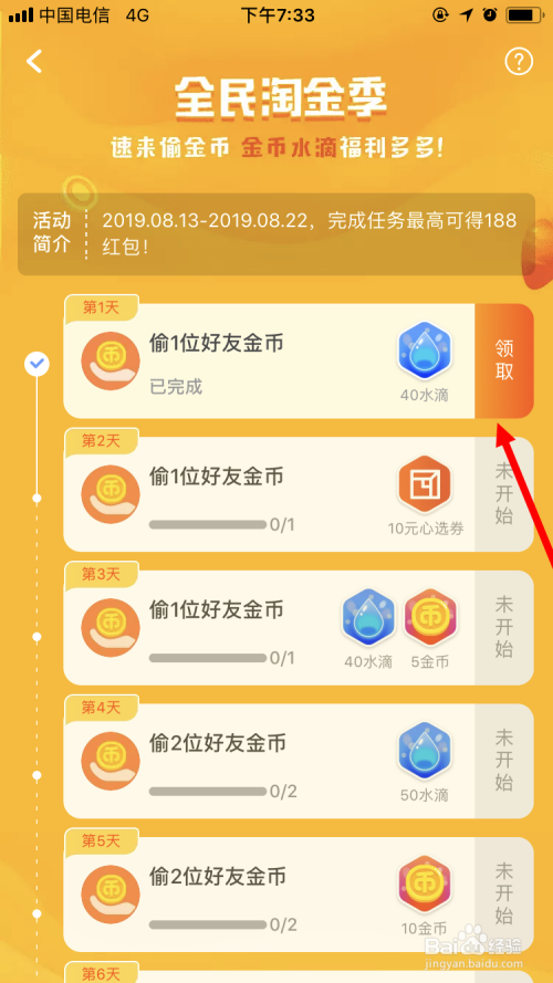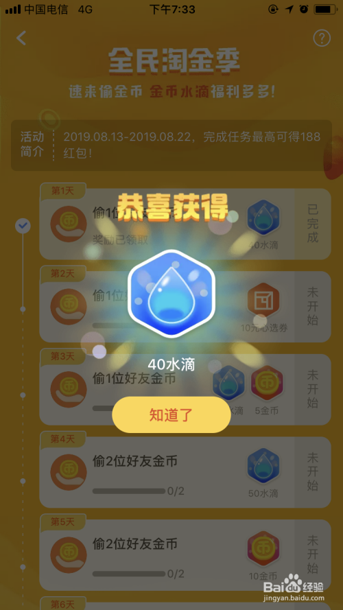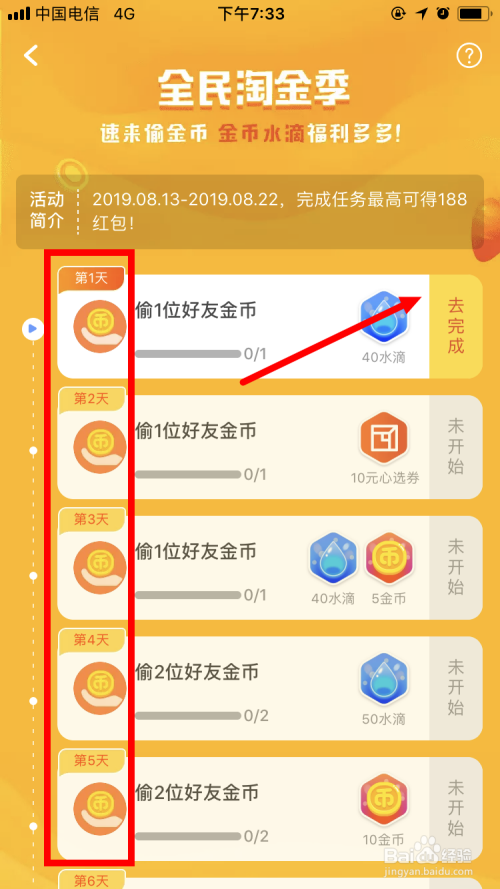 活动时代,天天都有响应的使命。完当作使命,可以活动响应的奖励,好比水滴、金币、优惠券等。
