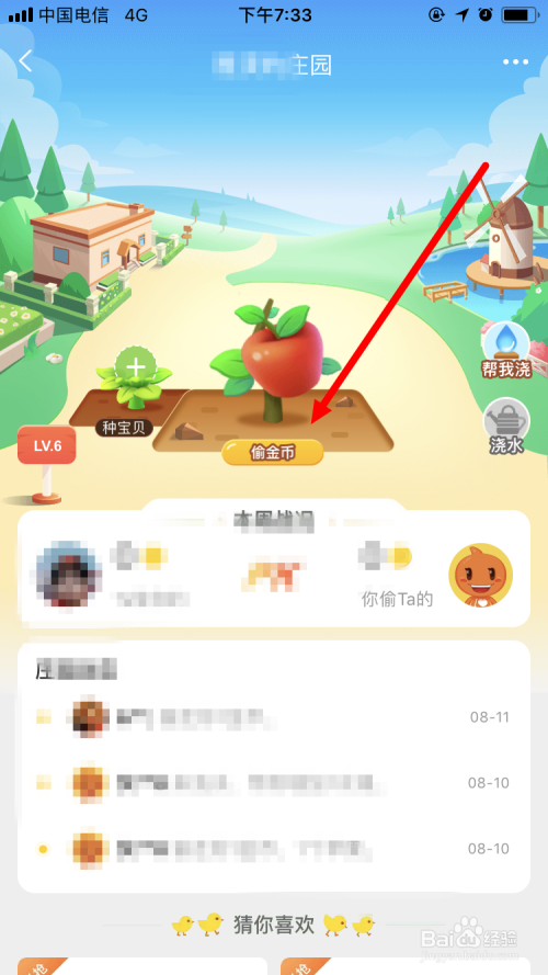 然后在老友的 金币庄园 里,点击 偷金币 。