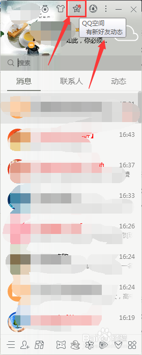点击QQ界面的上方,找到“QQ空间”的图标,如图: