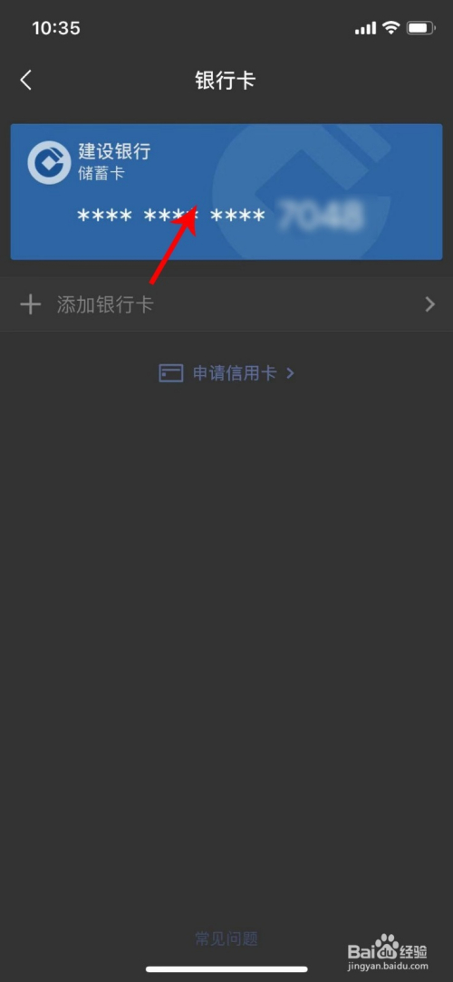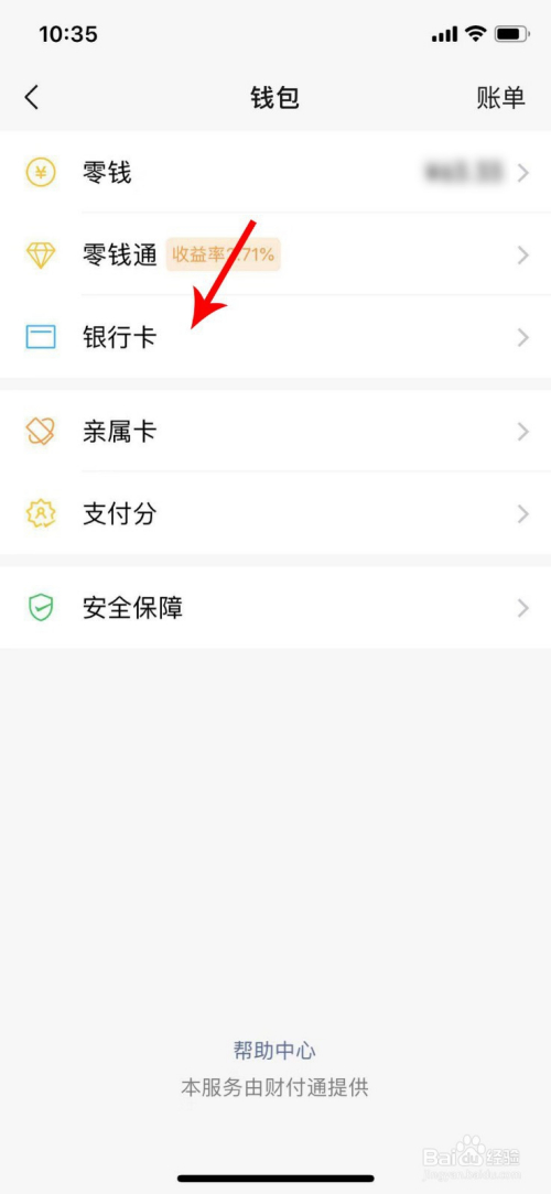 在钱包页面,点击“银行卡”,