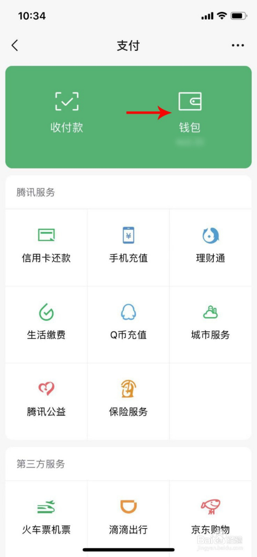 进入支付页面后,点击“钱包”,