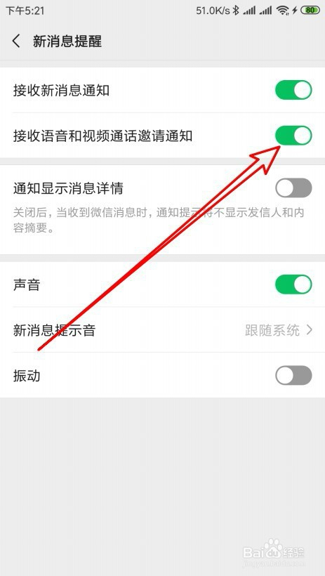 然后在打开的新动静提醒的页面中,找到“接收语音和视频通话邀请通知”的设置项。
