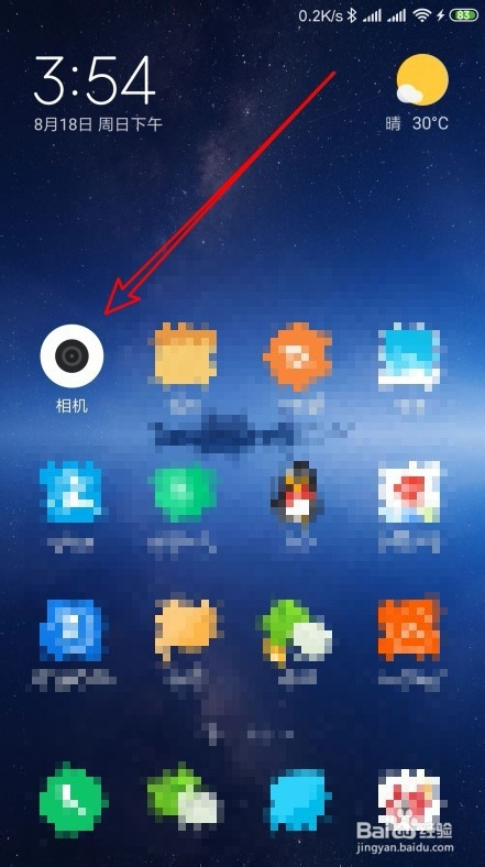 我们在手机屏幕上摆布的滑动,找到小米9手机的相机图标。