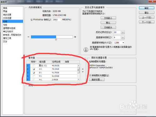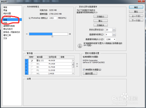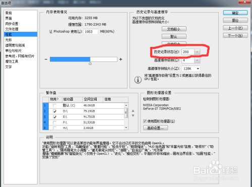 汗青记实的设置。在暂存盘右侧找到汗青记实状况,该数值暗示的是当操作掉误时,可以记实的汗青步调数,建议改为200以上。设置为点击确定撤退退却出。