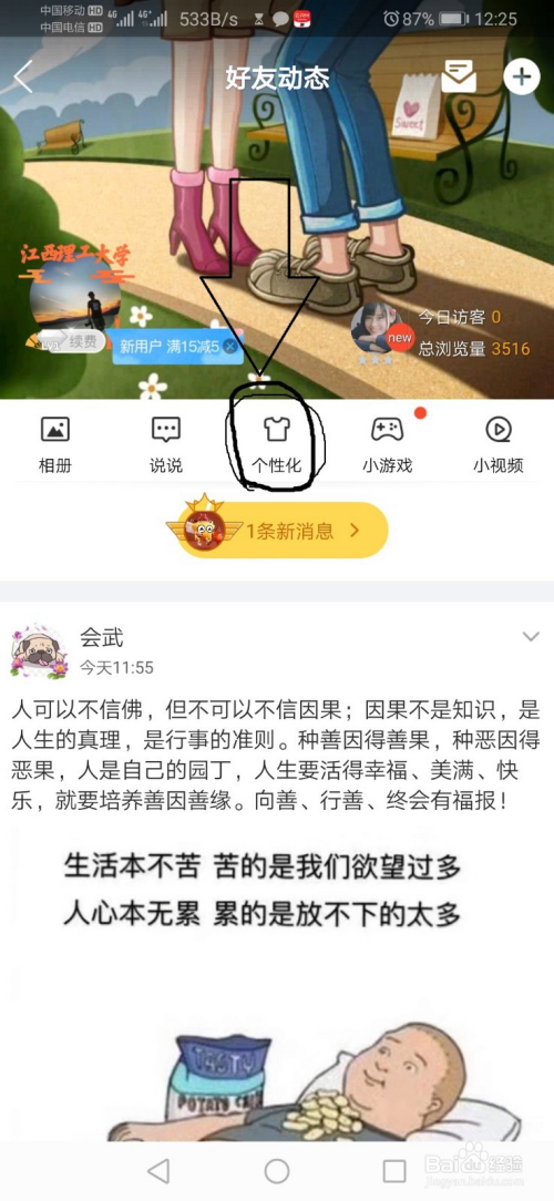 第一步,进入QQ空间,点击“个性化”