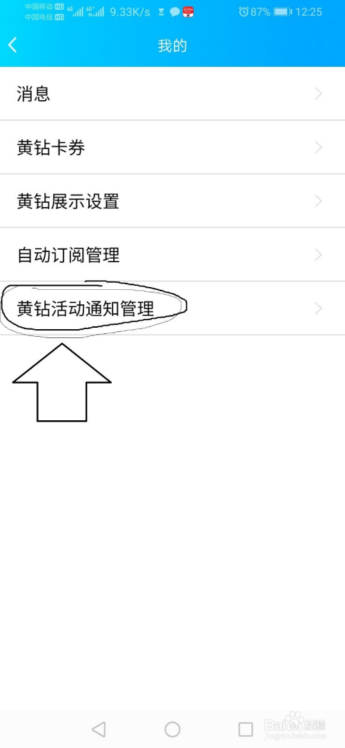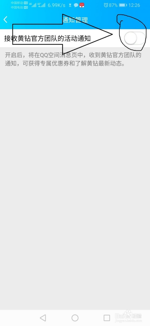 第五步,点击“黄钻活动通知办理”