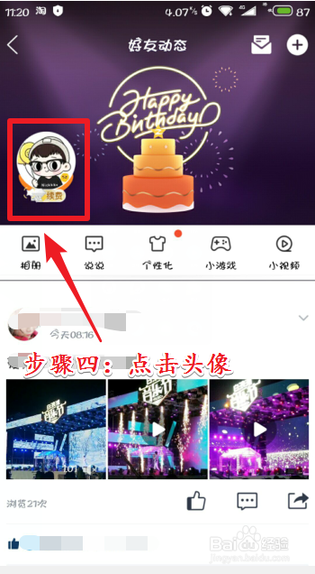 进入“老友动态”功能界面今后,点击界面上的头像进入小我空间界面。在小我空间界面的头像旁边可以查看到期时候。