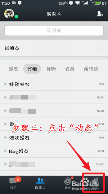 进入“动态”功能界面今后,在功能列表中找到且点击“老友动态”功能。