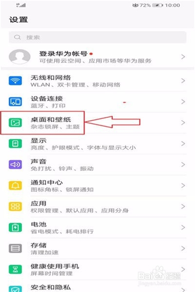 在手机本家儿页点【设置】,点【设置之后,】在【设置】功能页面,再点【桌面和壁纸】。