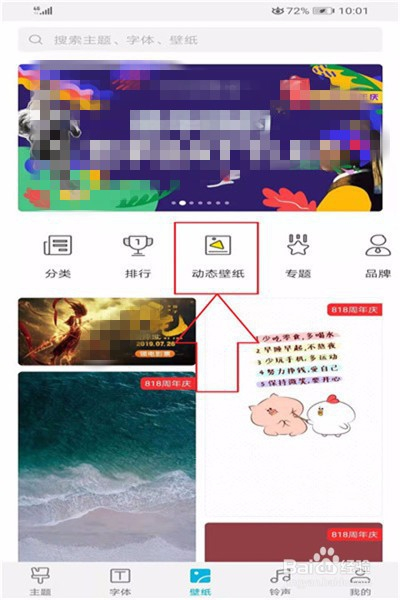 接着点【动态壁纸】,点【动态壁纸】之后,呈现良多【动态壁纸】的样式,选择一个本身喜好的样式点一下选中。