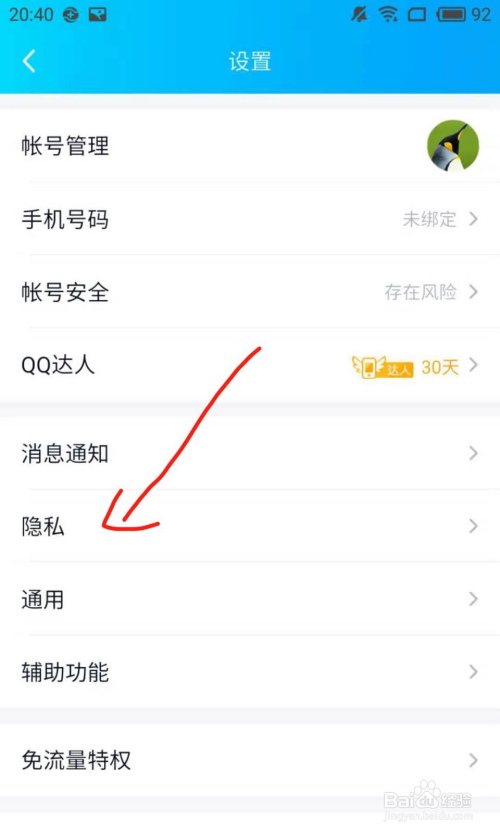 找到“隐私”,点击进入。