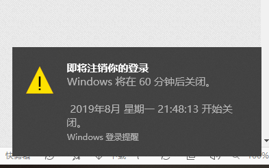 点击“确定”或者按下回车键,电脑会在1个小时后关机,屏幕右下角会弹出提醒。