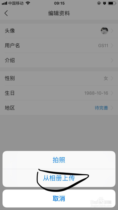 可以有两种体例,一种是摄影,一种是从相册上传,小编选择从相册上传