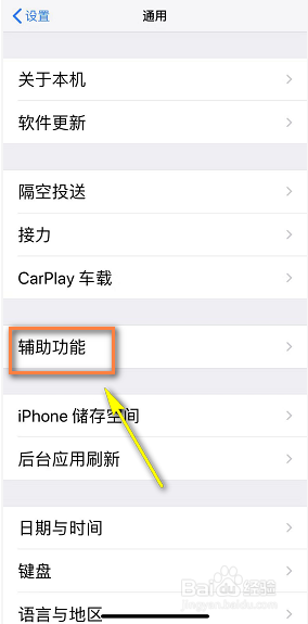 通用界面点击【辅助功能】,如下图所示