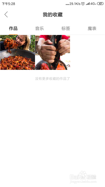 在保藏界面的分类【作品】下就是我们保藏的快手视频。