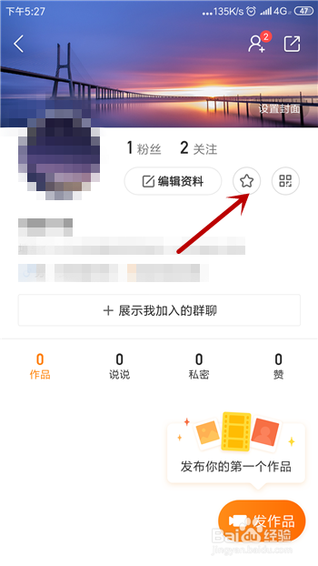 在更多界面的顶部是我们的快手头像,点击进入小我本家儿页。