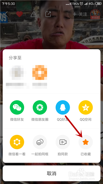 在分享界面里找到【已保藏】,点击即可打消这个保藏视频。