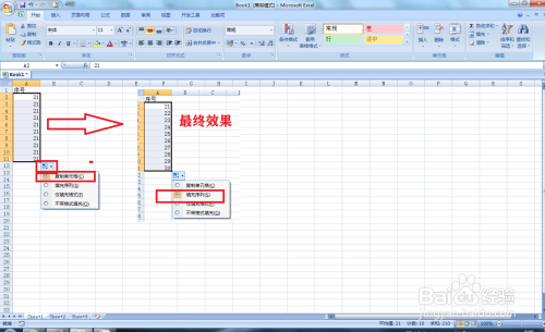 我们在利用EXCEL2007版本的时辰,输入一个数字然后往下拖沓填充,这时发现全数都是同第一个单位格数字一样的,没有递增,这时因为默认的拖沓填充是复制单位格,这时点击填凑数据规模的右下角的:主动填充选项——把默认选择的:复制单位格改当作选择:填充系列,这时就会主动把本来复制的内容酿成递增填充的数据系列。