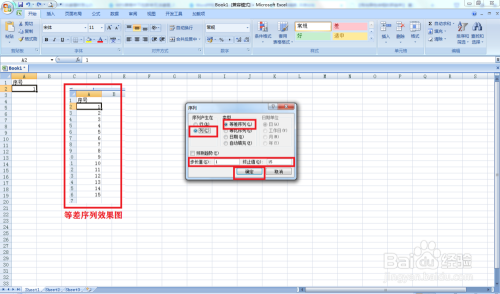 接着选择系列发生在:列——类型:等差序列——步长值输入1——终止值输入15——点击确定,输入的步长和终止值由本身按照现实来决议。步长值就是等差值,可以输入步长2或3等,按等差值递增。