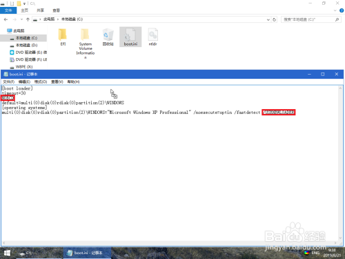 打开 FAT32 分区根目次下的 boot.ini ,添加以下参数: