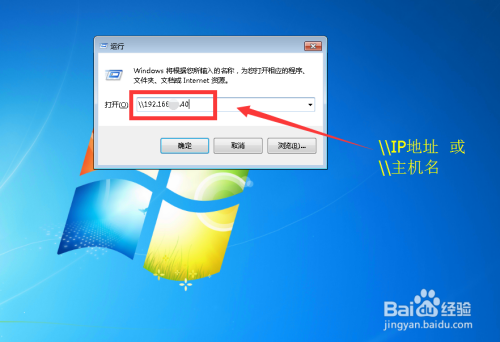 在要利用打印机的电脑的开始菜单中找到运行(或直接在键盘上按 WIN + R 快捷键),输入共享打印机电脑的IP地址或本家儿机名,点击确定。