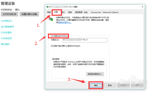 在弹出的打印机属性中,点击共享睁开共享属性页面,勾选 共享这台打印机,点击确定即可。