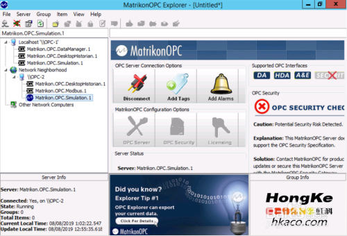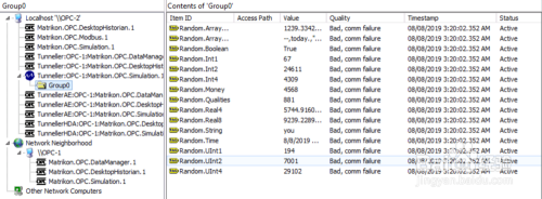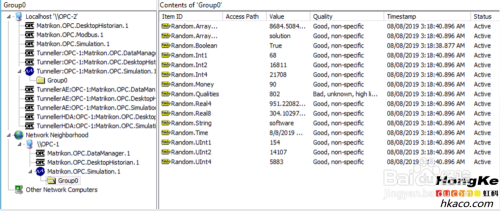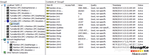 可以看到,在OPC-2的OPC Explorer里能看到两种体例毗连到OPC-1的simulation办事器的OPC组。并且两种体例的组里OPC项都是good质量。
