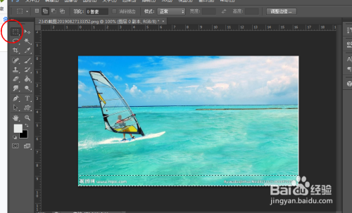 第2种方式,用矩形选框东西。拔取图片,底部的水印部门,点击del键,去除。