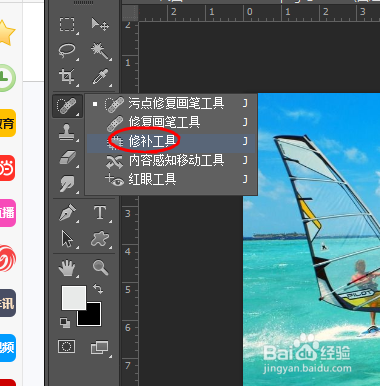首先在ps里面打开图片,我们看到图片的下方有水印。点击左边菜单东西的裁剪东西。
