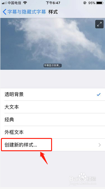 在字幕与埋没式字幕界面选择下面的“样式”,样式下面找到“建立新的样式”点击进入;