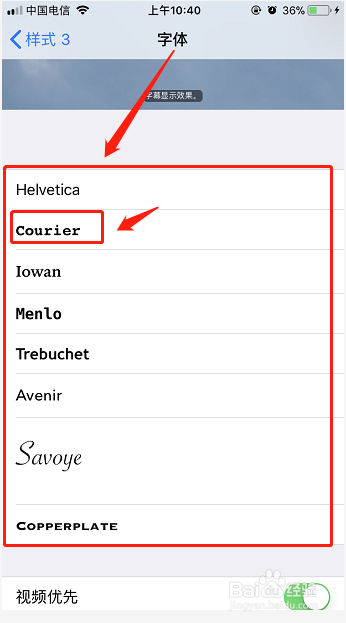 在字体界面下面有几种字体,按照本身的喜好选择一种字体,然后返回就设置当作功了。