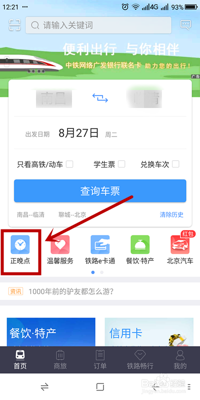 在程序首页,找到“正晚点”单击(没有注册过12306的用户,要注册登录今后才行)