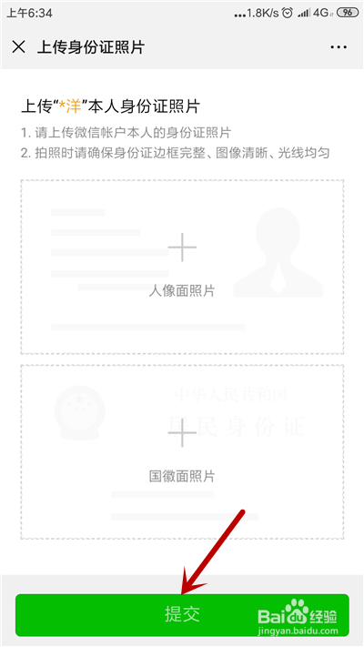 进入上传界面,添加身份证正背面,点击【提交】,审核后可完当作实名认证。