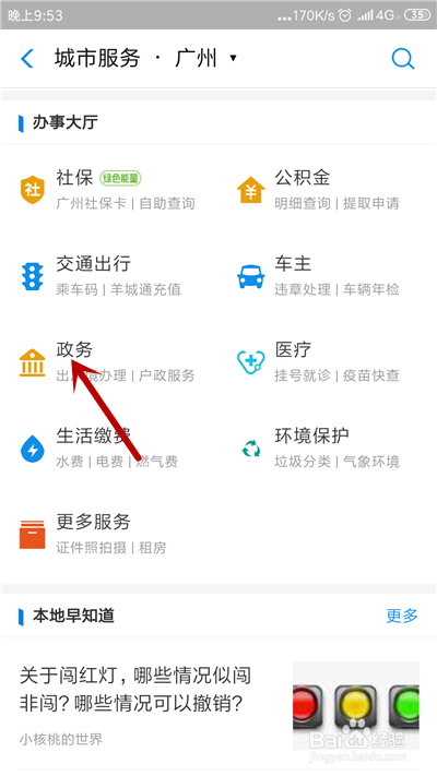 进入城市办事,点击【政务】应用。
