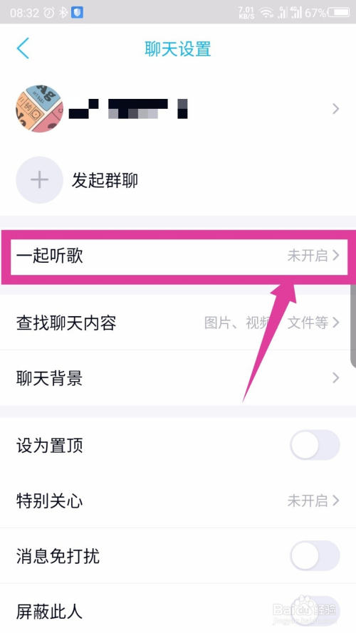 就打开了聊天设置界面,点击一路听歌选项。如图所示