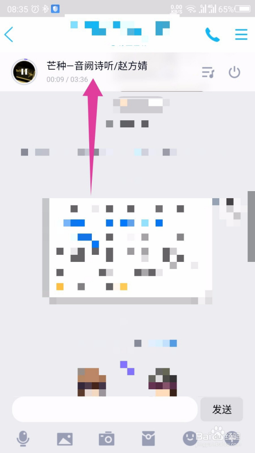 然后就开启播放了,返回到对话窗口中,能看到上面显示的播放条。如图所示