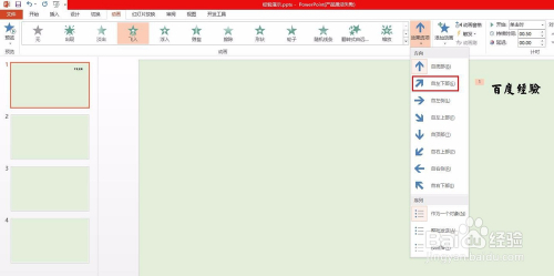 第四步:单击“结果选项”,鄙人拉菜单中选择飞入偏向,这里选的是自左下部。