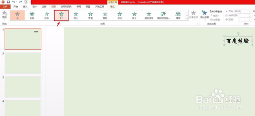第三步:选中文本框,单击选择菜单栏“动画”中的“飞入”结果。