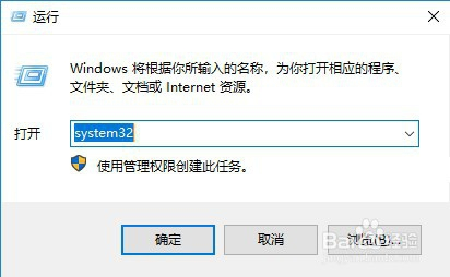 弹出对话框输入system32,然后回车