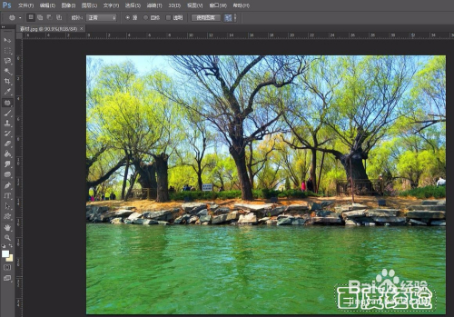第一步:打开ps软件,单击“文件--打开”,找到并打开需要去失落水印的图片。